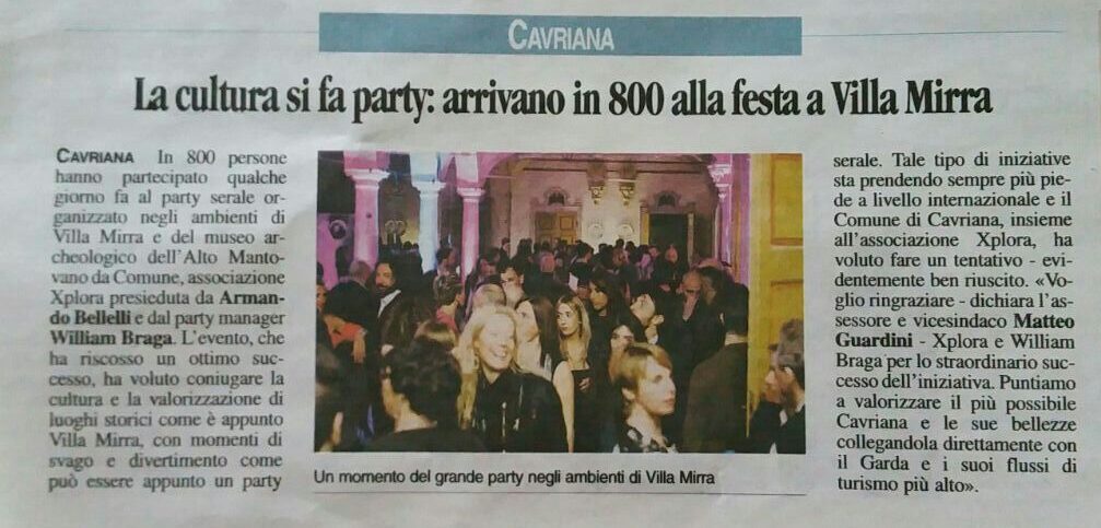 Avvio di una collaborazione con le istituzioni. I comuni e le fondazioni a partecipazione pubblica si rivolgono alla Serata Chic per l’ideazione di eventi utili alla promozione museale. Nasce l’idea di un cocktail party itinerante museale. Mappe dei tesori d’Italia, rivista ufficiale del Ministero dei Beni culturali della Repubblica italiana diventa partner di Serata Chic che si estende al Veneto. Serata Chic incrementa gli investimenti nel settore Audio e Luci.